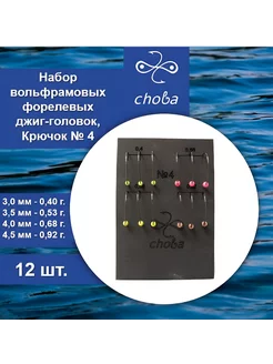 Набор джиг-головок вольфрамовых на крючке № 4, 12 шт