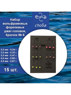 Набор джиг-головок вольфрамовых на крючке № 6, 15 шт