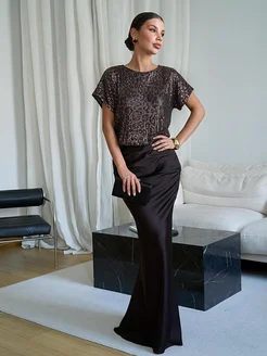 Платье новогоднее блестящее вечернее с разрезом 2026