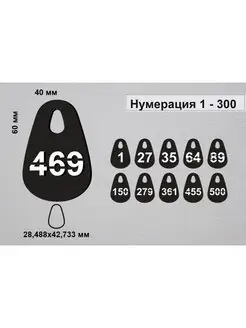 Номерки гардеробные от 1 до 300 "капля" акрил черный