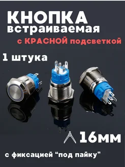 Кнопка встраиваемая круглая с красной подсветкой