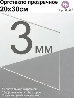 Оргстекло прозрачное 3мм, 20х30см, 1шт