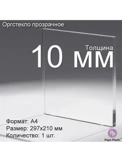 Оргстекло прозрачное 10мм, А4 (297x210мм), 1шт