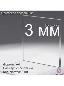 Оргстекло прозрачное 3мм, А4 (297x210мм), 1шт