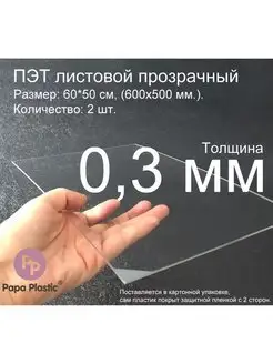 ПЭТ лист прозрачный 60*50, 0,3мм, 2шт