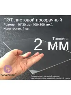 ПЭТ лист прозрачный 40*30, 2мм, 1шт