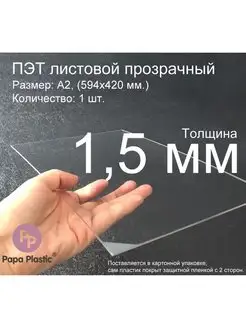 ПЭТ лист прозрачный А2 594x420 1,5мм 1шт
