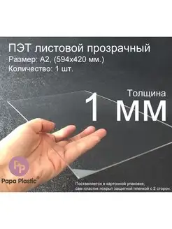 ПЭТ лист прозрачный А2 594x420мм 1мм 1шт