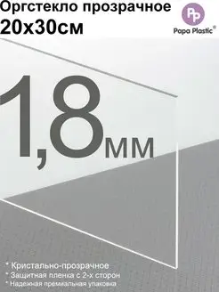 Оргстекло прозрачное 1,5мм, 20х30см, 1шт