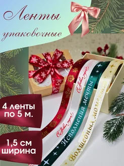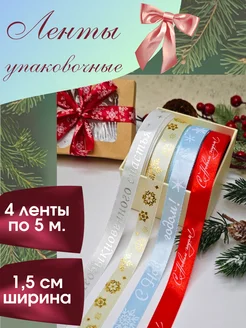Ленты 4 шт.*5 метра подарочные, набор новогодние 2026