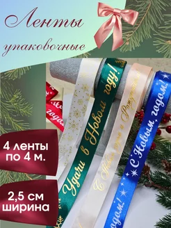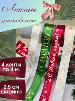 Ленты 4 шт.*4 метра подарочные, набор новогодние 2025