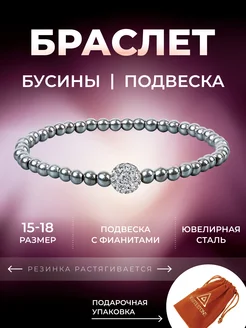 Браслет из металлических бусин с подвеской в стразах