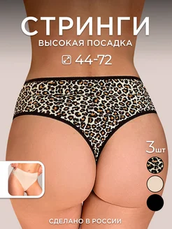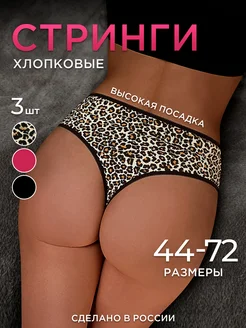 Леопардовые стринги хлопковые с высокой посадкой набор