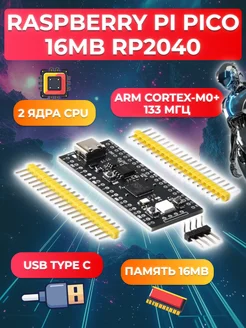 Микроконтроллер Raspberry Pi Pico 16МБ 2040 RP (Type C)