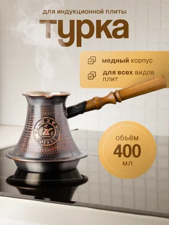 Медная турка для любой плиты джезва ручной работы, 400 мл
