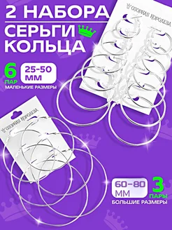 Серьги кольца круглые большие бижутерия 25,30,40,50,60,70мм