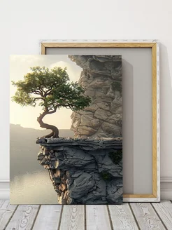 Интерьерная картина на стену 50х70 "Дерево на скале"