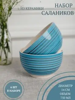 Набор салатников из керамики 6 шт 750 мл