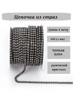 Цепочка со стразами черный дымчатый (1 метр, 2мм)