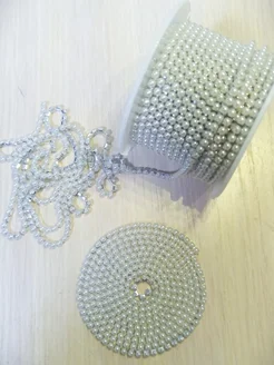 Цепочка с жемчугом в серебристой оправе (1 метр, 2мм)