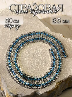 Стразовая цепочка аквамарин 3 ряда (длина 50 см)