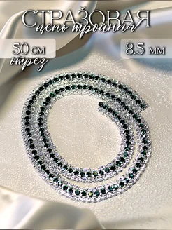 Стразовая цепочка изумруд 3 ряда (длина 50 см)