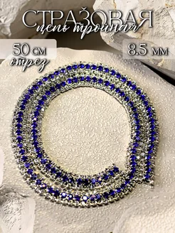 Стразовая цепочка синий 3 ряда (длина 50 см)