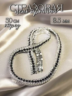 Стразовая цепочка черная 3 ряда (длина 50 см)
