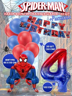 Шары человек паук spider man с цифрой 4