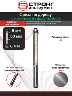 Фреза кромочная по дереву прямая Z2, 8х8Dх50H мм