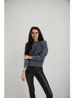 Лонгслив из хлопка однотонный оверсайз с принтом кофта