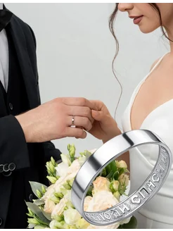 Серебряное обручальное кольцо "Спаси и сохрани"