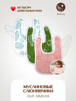 Нагрудники для кормления новорожденных муслиновые 3 шт