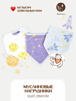 Слюнявчики для кормления новорожденных муслиновые 3 шт