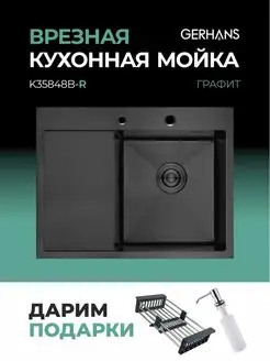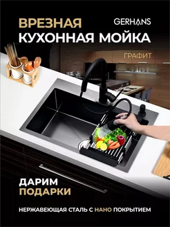 GERHАNS Мойка для кухни нержавейка 58*48 черная