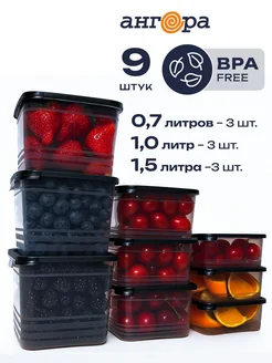Контейнер для хранения с крышкой пластиковый кухонный, 9 шт
