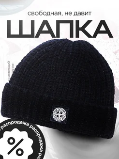 Stone Island Мужская зимняя вязаная шапка с отворотом