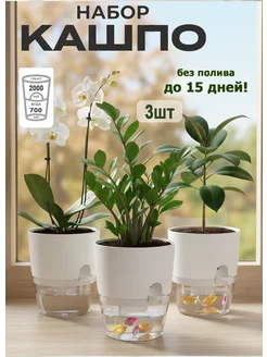 Горшок с фитильным поливом набор кашпо 3 шт 2 литра