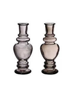 Стеклянные подсвечники-вазы, серые, 16 см, 2 шт