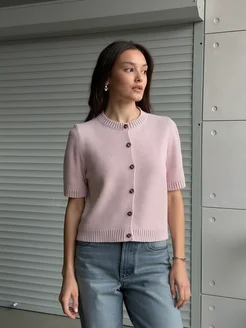 Лонгслив вязаный тонкий с воротником поло джемпер