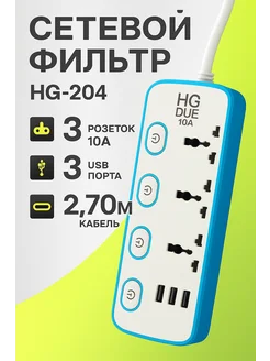 Сетевой фильтр без провода на 2 розетки+3USB HG-275