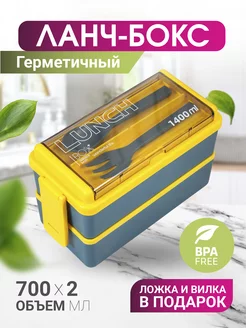 Герметичный ланч-бокс с отделениями, 1400 мл