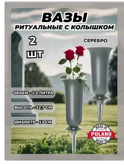 Ваза ритуальная с колышком на кладбище серебро 2 шт