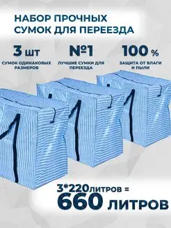 Набор хозяйственных сумок для переезда 3 шт по 220 литров