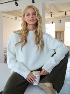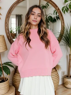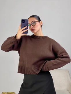 Свитер оверсайз укороченный вязаный теплый