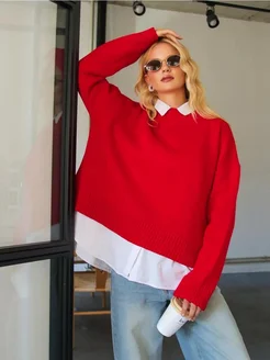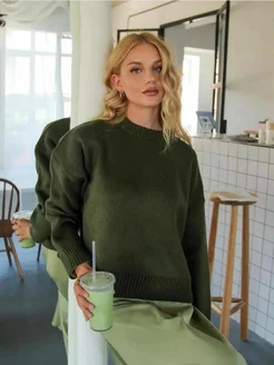 свитер оверсайз укороченный вязаный теплый