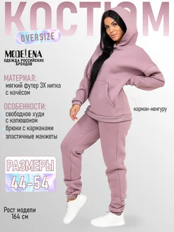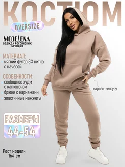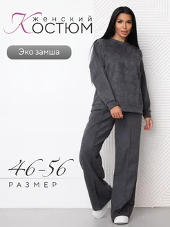 Костюм замшевый брючный теплый с штанами палаццо и свитшотом