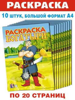 Раскраска для мальчиков Богатыри, 10 шт. большой формат А4