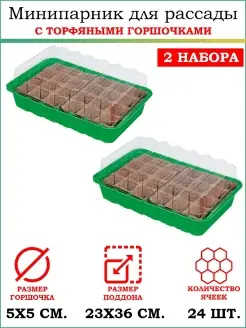 Мини парник для рассады 2шт. с торфяными кассетами на 24 яч