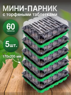Минипарник для рассады с крышкой, торфяные таблетки 60 шт